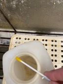 解決する方法として、最初に使用したアルカリ性洗剤に洗浄後に、漬けておくことにしました。